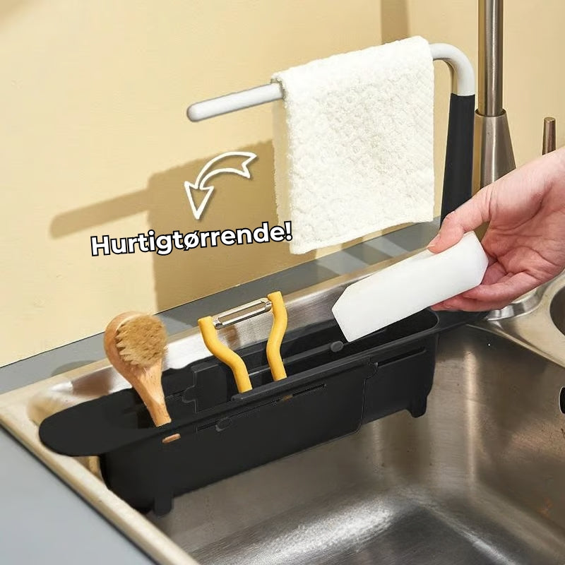 Det udtrækkelige design gør det nemt at tilpasse længden efter din vask. Uanset størrelse får du optimal udnyttelse af pladsen uden at optage unødvendig plads på køkkenbordet.