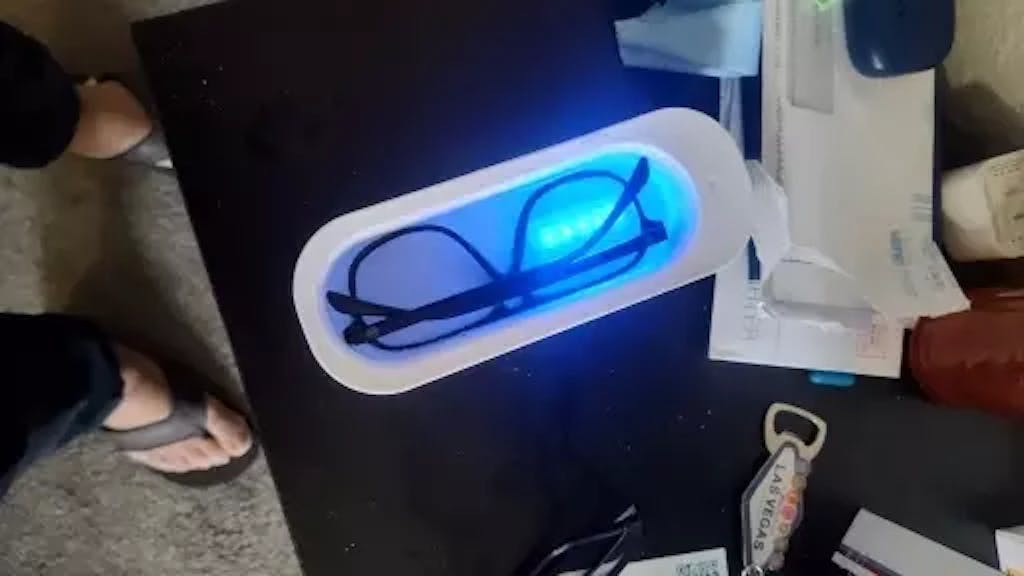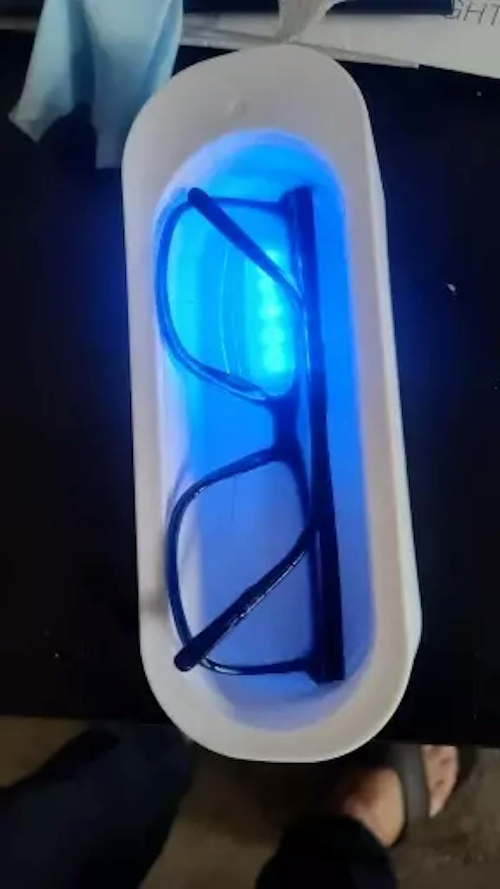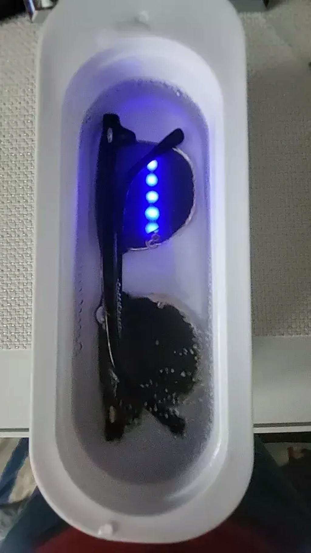 Læg dine briller i og tryk på knappen. Ultralydsrenseren starter automatisk.