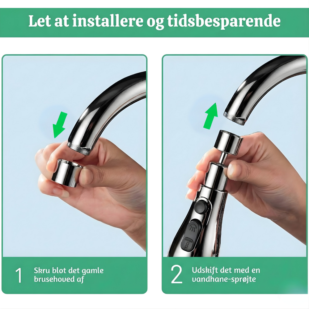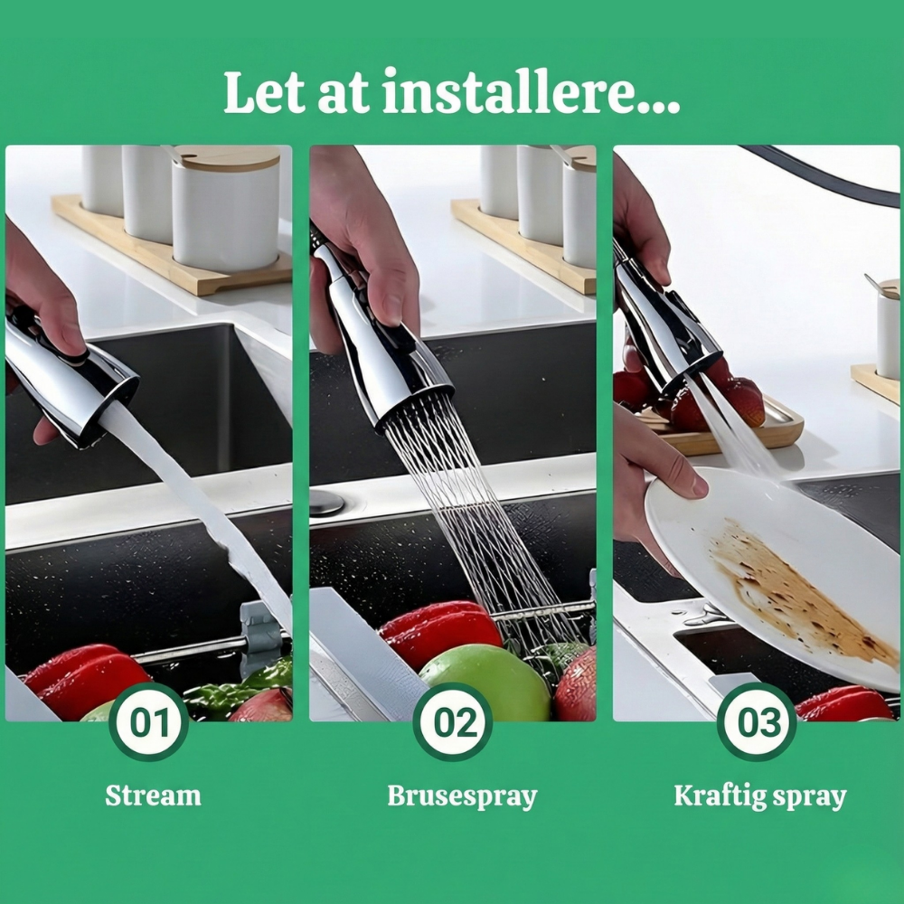 Gør din køkkenhane smartere og mere fleksibel på få sekunder – helt uden stænk.